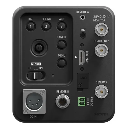 - Salidas: HDMI, 2x 3G/HD-SDI, Genlock, RS-422, mini-jack 2,5 mm (control remoto)